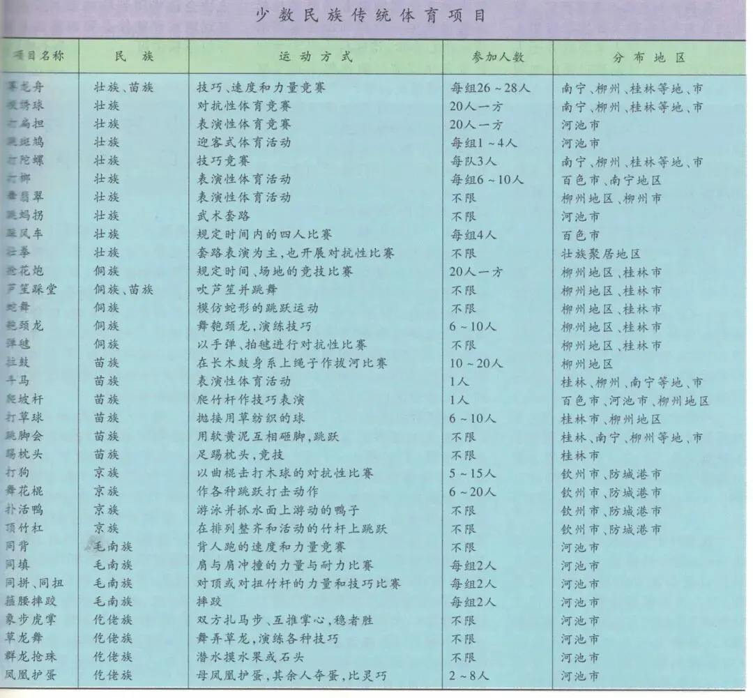少数民族传统体育项目一览表