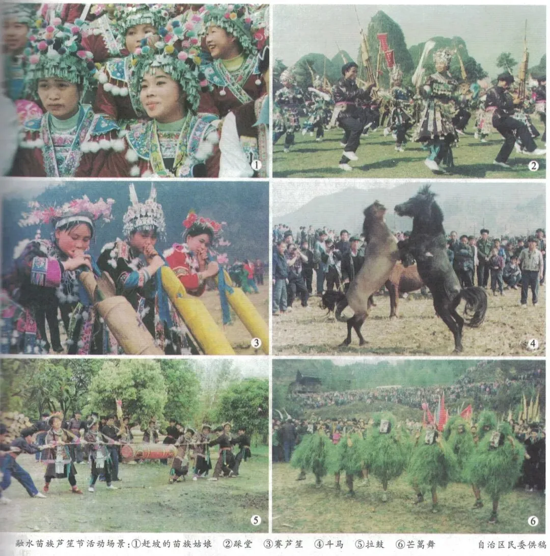 · 苗族系列节庆:苗年、芦笙节、坡会、以及独特的“拉牛上树”节,都是苗族社会生活的重心。芦笙场上,青年男女围圈踩堂;坡会期间,斗马、斗鸟、赛芦笙,热闹非凡。
