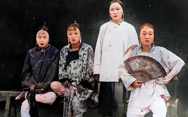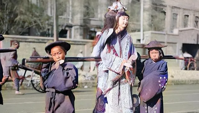 开头先说在前面吧,这一组老照片上了色却不掩旧味儿,乍一看像是隔着玻璃望过去的日子,衣料的褶子都能数清,人的眉眼也不再是传说里那样浮夸的光环,百年前的人活得具体又发涩,有人香粉盈袖,有人泥尘扑面,我们就按图索骥慢慢看。