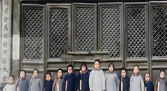 这一屋都是男学生,方桌擦得发亮,窗格子花纹规整,先生不在镜头里,却像在背后咳了一声,大家就坐正了,书页铺在案上,指头压着边儿,有人眼睛圆,有人半眯着,那会儿女娃多没这福分,现在教室里最常见的是投影幕,男女挨着坐,抬头就是同一道题。