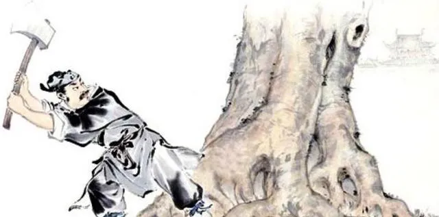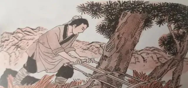 这幅图里是赶工砍树,肩上全是木捆,老舅讲过一桩事,乡里修桥,一年砍得太狠,第二年水患一来,田窝全塌了,大家蹲在河边抹眼泪,第三年就改主意了,桥修完给两岸补种杨柳,谁家砍谁家栽。