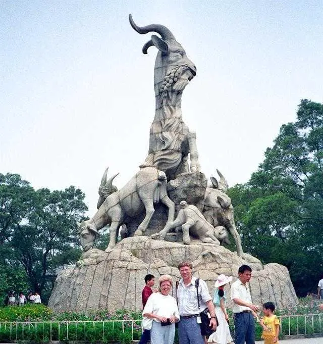 这尊石雕叫五羊石像,羊角高挑,石缝里塞着青苔,底座像一圈浪,九十年代的游客爱在前面合影,穿浅色T恤,腰上别个黑皮包,舅舅看照片直笑,说那会儿到广州就得去照一张,像给旅程盖个章,现在手机地图打卡一长串,真正留在心里的还是几处老地标。