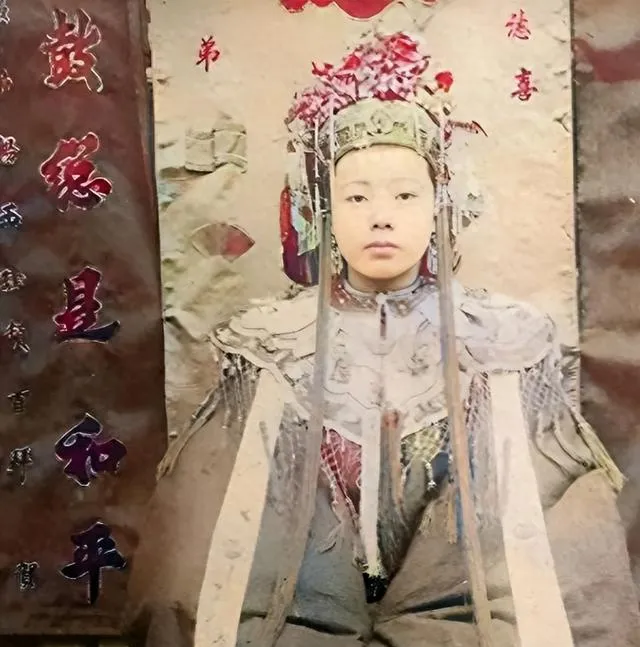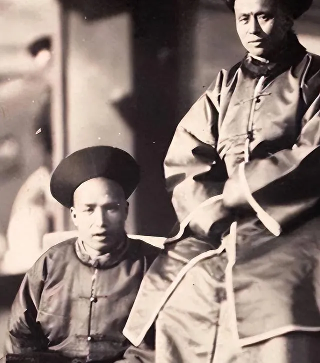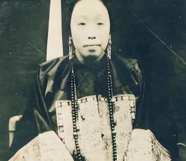 穿着朝服的清朝太太坐得端正,颈上串着长长的朝珠,胸前垂挂补服,面上扑粉白里透青,耳坠坠得直碰肩,盛装是给镜头看的,也是给家族看的,那会儿拍照要讲排场,衣裳借也要借齐整。