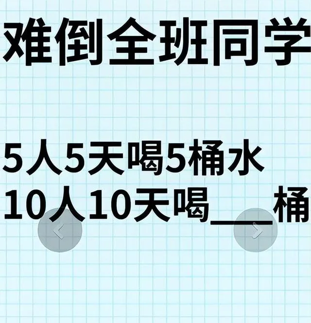 这张写着“5人5天喝5桶水,10人10天喝——桶”,弟弟看了笑,说这不就是成倍嘛,答案在心里过一遍便放下,照片堆里忽然来个脑筋急转弯,也算是从沉重里抻口气。