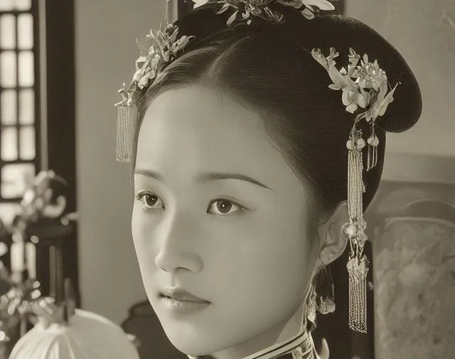 这个清秀的姑娘应该是格格,鬓边缀小花,衣领滚边细细的,脸上没笑,眼睛却亮,像在盘算明天要穿哪对耳坠,小时候我也学着把头发梳紧,耳后夹两枚夹子,走两步就硌得疼,想学个样子不容易啊。