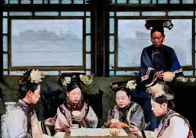 这一屋子的柱子粗得能抱不过来,窗纸糊得透光,几个人端着碗围坐,案上一个大铜壶冒白汽,讲的是家长里短,谁家新添了口人,谁家地里出了虫,说到兴头上会压低嗓子笑两声,过去的夜晚长,话就成了灯。