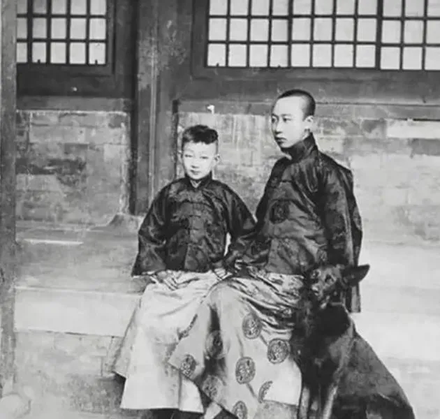 图里穿团龙暗纹马褂的年轻人坐在台阶上,身边的小子束着髻,脚边卧着一条黑狗,眼睛亮得像两颗玻璃珠,家里要有余钱,才养得起会看门的狗,奶奶笑说有的还给狗做缎面垫子,真把它当祖宗供着。