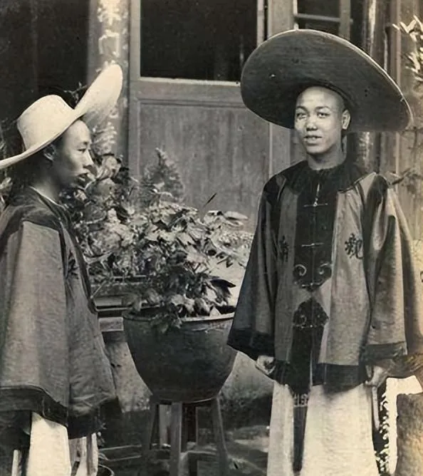 这两位头上戴的是宽檐笠帽,绒呢帽檐拍一下能扬起灰,袍服前襟绣着纹样,袖口收得窄便于做事,腰间吊牌叮当响,走路带风,远远看过去就知道是办差的,规矩在身,话少也有分量。