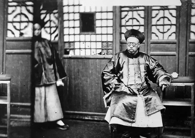 这照片看着有点滑稽,是以前道台大人拍照的场景,阿豪在整理资料时见到这个,湖北汉黄德道台兼江汉关监督李明墀,正准备拍张正经的肖像,