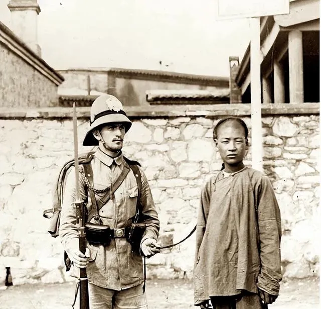 图里那根细细的辫子被人一把攥着,年轻人脸紧着,洋兵头盔亮亮的,枪刺直立,皮革挂带一圈圈,像在炫耀,爷爷说那会儿街口一转弯就能撞见巡逻,辫子成了把手,谁被拽住就跟牲口似的走两步,人群不敢抬眼,只盯鞋尖看路,这一幕现在看着气人,当时的人只求快点过去算了。