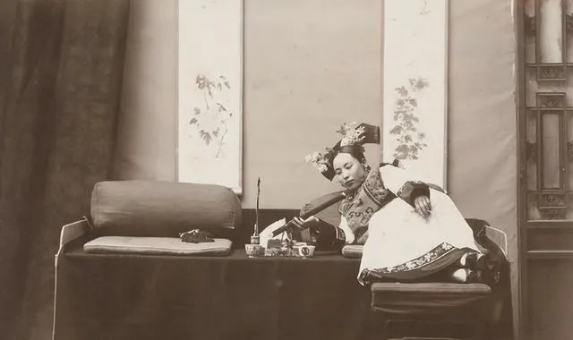 这个姿势叫躺抽,锦缎靠垫堆成小山,银嘴烟枪细长,火盆边放着烟壶,女子半侧身,指尖夹着烟杆,烟雾像丝线绕上檀木屏,奶奶说那会儿真把这个当享受,身子一软过去就觉得神仙了似的,现在听着吓人,当时的人却觉得风雅。