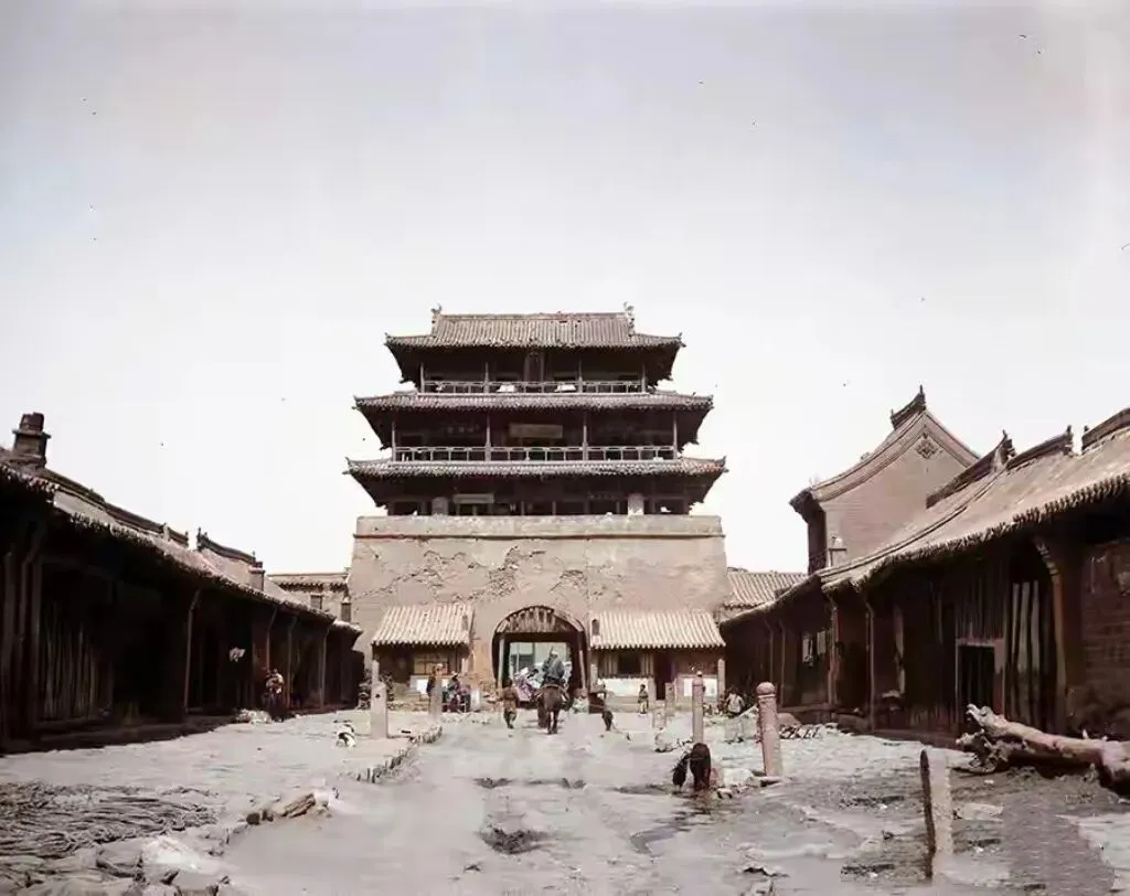 龙门所镇位于赤城县东北部,明代时期(1430年)这里曾设龙门卫。1914年克拉普镜头下的龙门所,高大的的城门上面的城墙已经有些破损,城门上方是三层高的阁楼,进出城门的人并不多,两边是房屋,街道是泥路,坑坑洼洼的。