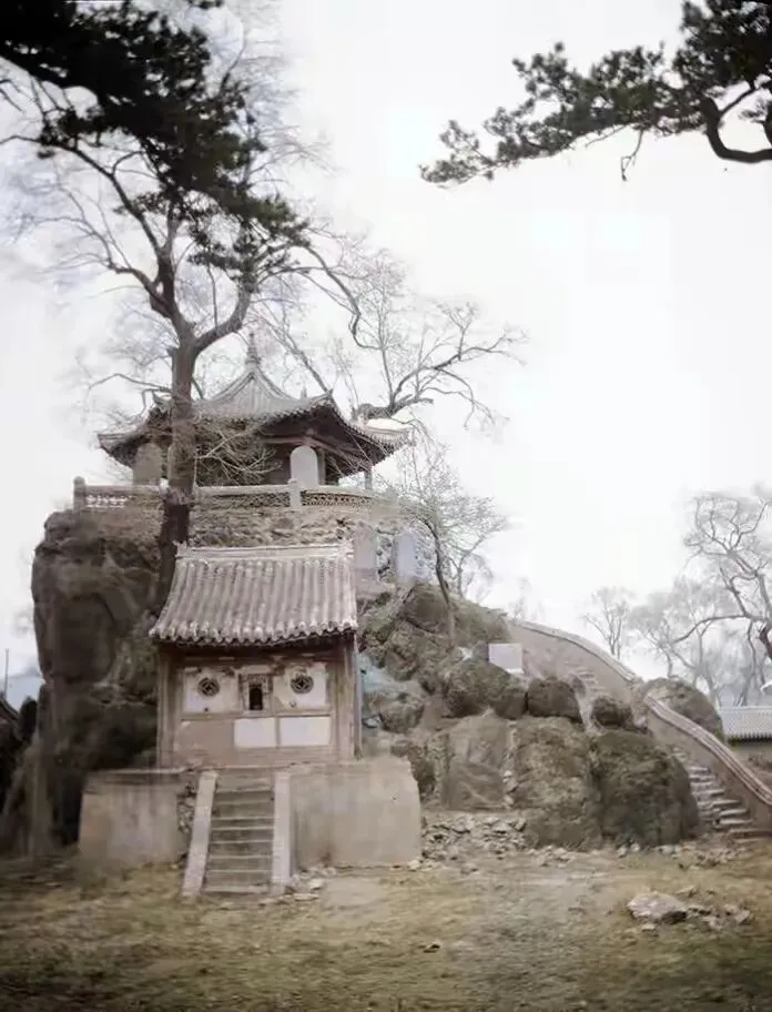 赤城县郊外的河滩上,有一块巨石高约8.7米,占地面积约78平方米,孤零零地矗立在白河滩上,因其外形奇特,古人曾认为其是“天外飞来”的陨石。 一块石头上有个凉亭,当地人称之为独石亭。石亭由一条石阶通行,亭子前有围栏,矗立着几通石碑。亭子下面有神龛,旁边种着几棵高大的树木,几名男子骑着马站在神龛前面。
