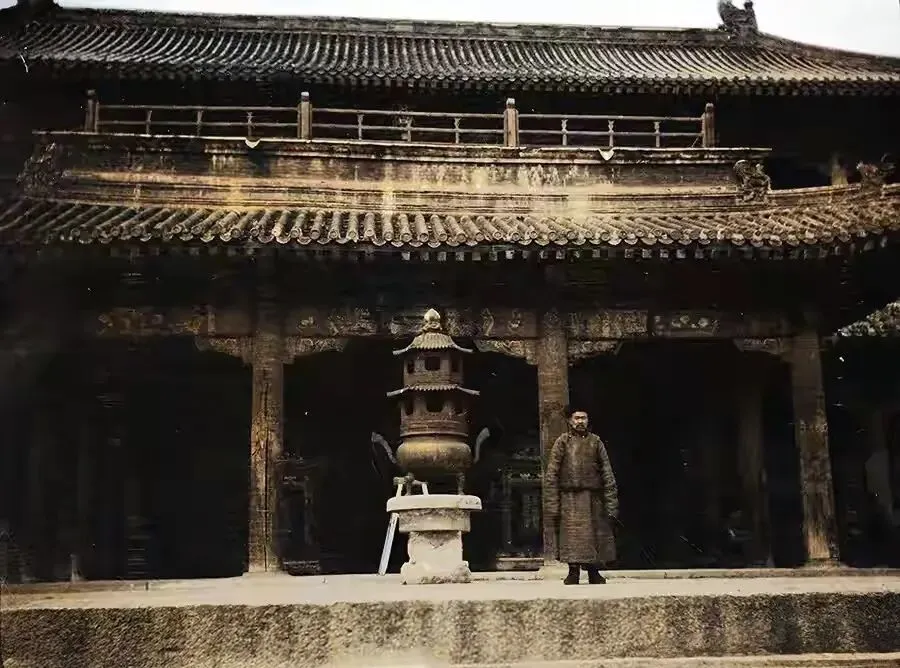 这座大雄宝殿该寺位于云州水库北岸舍身崖东麓的护国寺内,古色古香的大殿前正站着一名男子。