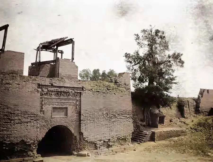 这里是西城门,拱形的城门有点矮,城墙有点破旧了,上面的阁楼已经坍塌,旁边的城墙也倒了一些,只有大树还生机勃勃。