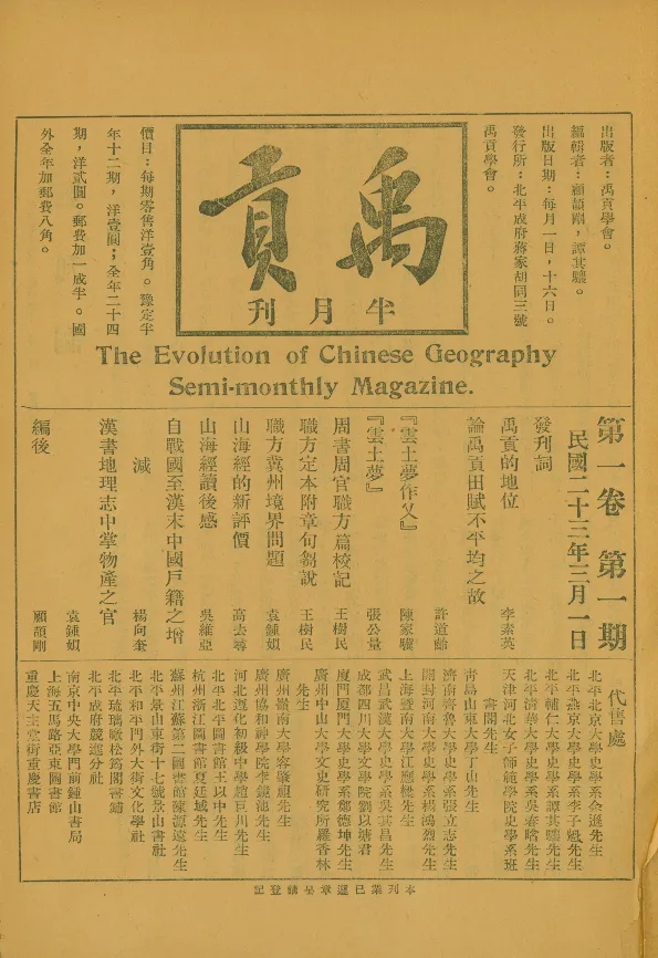 《禹贡》半月刊第1卷第1期封面