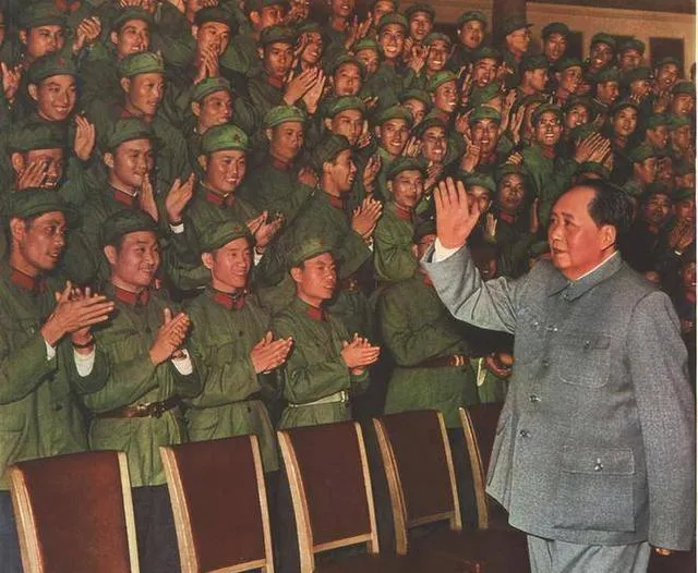 这一排年轻兵在座位间鼓掌致意,眼神里都是兴奋,那个最前排的小伙子还踮了脚尖,像要让自己高一点看清楚一点,时代给他们的任务重,他们给时代的回声也响,现在翻看这张照片,还是能听见掌声从纸里蹦出来,热辣辣地砸在心口。