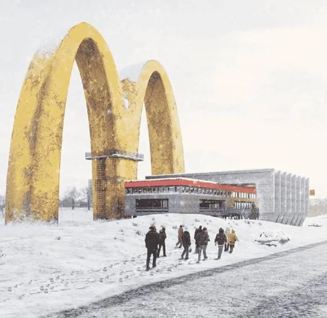 这座雪地里的巨大金拱门像个时代的标记,门洞下人排着队,帽檐压着眉,风吹得呼呼响,我第一次见这样的西式快餐,还是在电视里,心里犯嘀咕,真有那么好吃吗,等后来尝到,嗯,新鲜是真新鲜,但也就一顿热闹,家门口那碗热汤面,还是最顺口的。