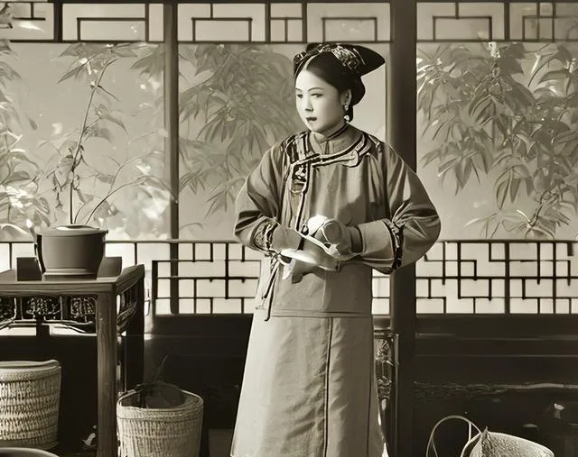 这件宽袖直领的褙子松松垮垮,女人靠着门框不笑也不怒,眼神空着,她的身份在老话里叫通房,也叫贴身人,表面是丫头,实则是屋里人,名字记在账簿的后页,奶奶叹气说这种命最难,太太一句话能抬也能踩,怀上了要看主母脸色,戏里常常演成互撕,实际多是低头熬。