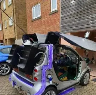 图里的家伙叫改装智能车,后仓开翅门,边上走一圈紫色灯带,车尾插着天线,像是要起飞,以前谁见过车里铺霓虹呀,现在满大街都是智能屏,方向盘都快变成平板了。