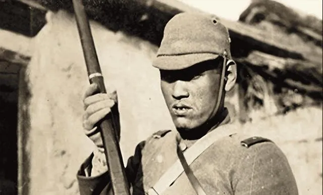 这个神情叫狠,薄嘴唇紧抿,肩头斜背一条皮带,手里握着长枪,木托磨得发亮,旧时的兵器沉,一枪上肩,整个人都被往下一拽,走起路来带风。