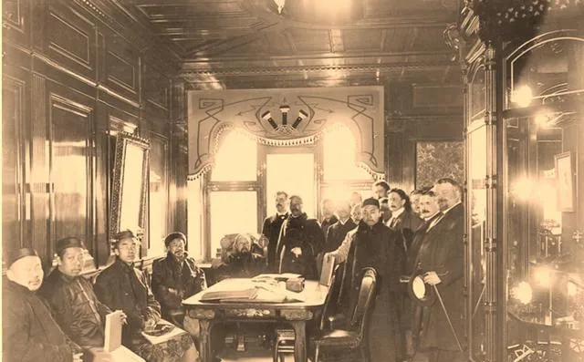 图中这间屋叫会客厅,木板墙抛得发亮,天花板压一层厚实的线脚,靠窗坐着的围成半圈,桌上散着文件和钢笔,灯泡像星星一样挂在边柜镜里,那个年代刚见识电灯,亮一下,心里都咯噔。