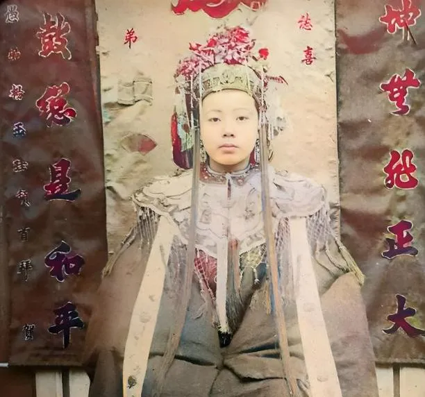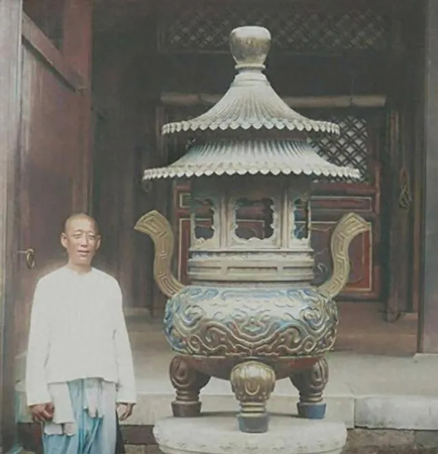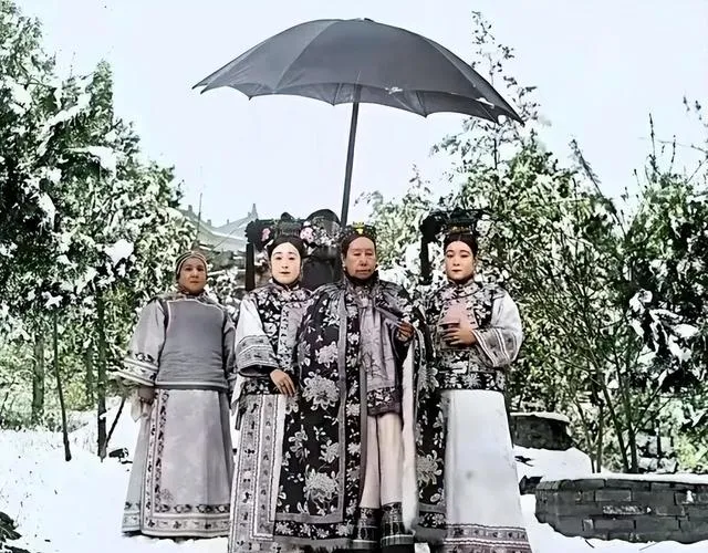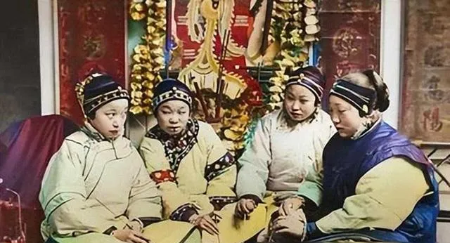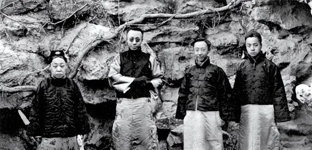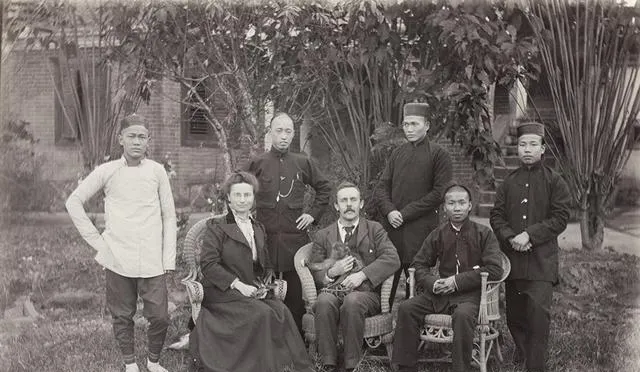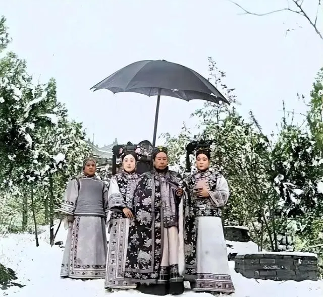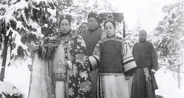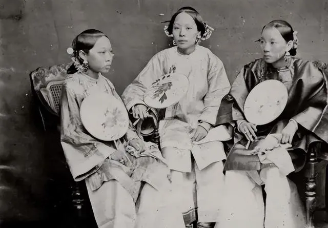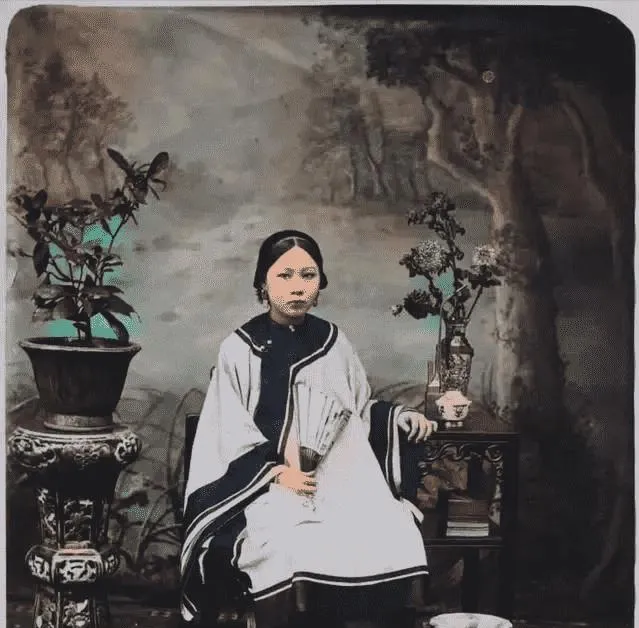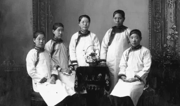 这一桌钟摆在中间,家人分坐两侧,绸缎衣料垂着亮光,镜头按下的那一刻,屋外可能还在敲更,屋内却把时间按住了,老照片就是这样有劲。