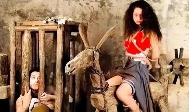 这个扎眼的家伙叫木驴,外形像一头不动的驴,实则是刑具,犯人被迫跨坐其上,窄而尖的木脊直接压在骨缝上,时间一长血脉不通,人晕过去都正常,以前衙门里还有人摇风箱给室内加火,热浪逼得人喘不上气,现在想想,真是比地狱还难受。