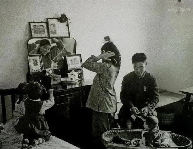 这间屋里的老梳妆台,镜子边框漆得发黑,抽屉里常备一把木梳和两张合影,父亲在床沿给孩子扣鞋,母亲抬手理发,窗外风吹着窗纱,家常就是这么过来的。