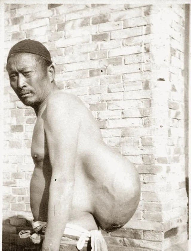 这位背长巨瘤的汉子站在墙根,身子向前探着保持平衡,医生稀缺的年代,很多病拖成绝症,衙门再严也治不了病,这一格只是提醒我们,活着本不容易。