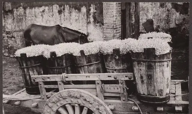 三轮车板上摆着半透明的大冰砖,阳光一打,边角在流水,师傅们赤膊上阵,肩头搭着毛巾,嘴里嚷着让路,车把咯吱咯吱响,夏天的热就靠这一块一块往小店里送。