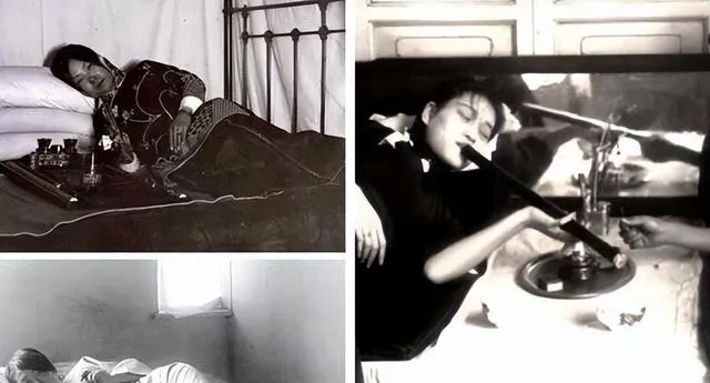 几张拼成的画里是吸大烟的床榻,长嘴的烟枪横在手臂上,铜火锅边上放着石枕,脸上那股迷糊劲儿看着就叫人发憷,外祖父说最怕这玩意儿,一家人指望的壮劳力,躺下去就站不起来了,屋里的米缸跟着见底,亲戚看人都绕着走。