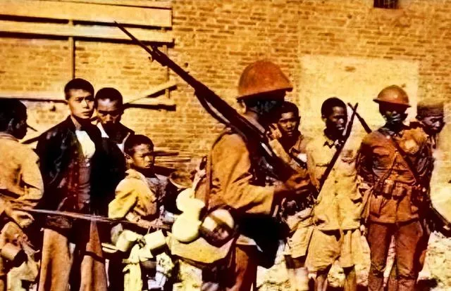 这群戴圆盔的兵是外敌的冲锋队,长枪上刺刀冷亮,碎墙后灰尘飞得像雾,脚步齐刷刷地迈出来,祖辈说那时候一队过来,巷口就没人敢出声,跟现在屏幕里打游戏不一样,真响起来是要命的声音。