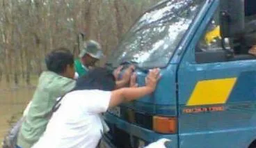 图里这姿势叫推错位,几个人憋着劲却顶在车玻璃上,隔着屏幕都替他们胳膊酸,朋友笑我说你别笑太早,你小时候也干过,用劲用在不该用的地儿,活也没干成,倒把自己累个够。