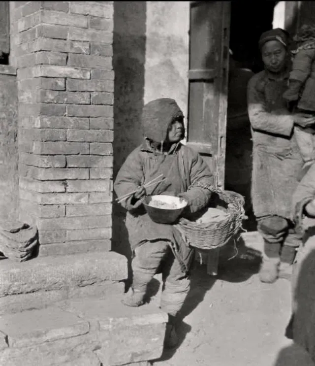 这个心酸,图中老妇怀里抱着个小娃,怀抱处还缝着布条做的兜,手里握的是破木碗,衣服一层层打着补丁,风一吹就响,妈妈看见这种照片会不自觉地压低声音,说以前日子难,能吃饱就是福,现在我们挑口味挑热量,想想也真是新鲜事。