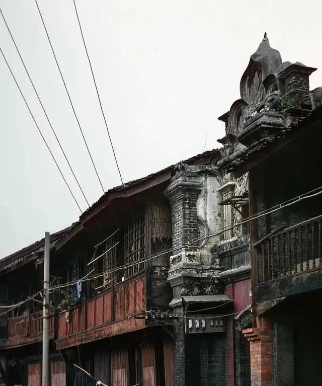 这个转角砖楼,阳台的铁栏花纹绕来绕去,窗扇高高,下面堆着沙袋防水,城里街景从这类楼开始现代起来,砖缝一块块整齐,像方格纸,现在高楼玻璃幕墙亮闪闪,走近了却摸不到温度,老砖墙一贴脸,都是太阳烘过的热。
