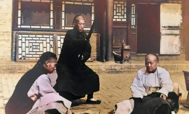 这张算家法重器的场面,长辈手里握着长刀状器物,院子里砖缝清晰,旁人或劝或看,旧社会讲究门规,讲究脸面,出了错先关起门来收拾,奶奶叹气说,规矩是管人的,可也伤人,现在我们遇事找法子,找合规流程,少了点杀伐,多了点转圜。