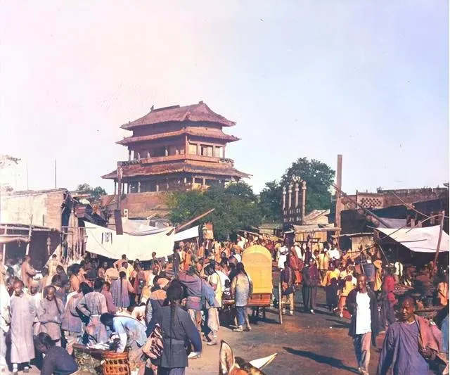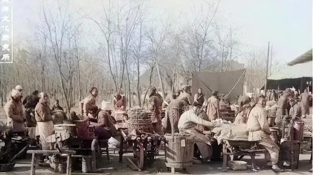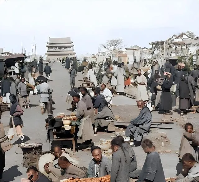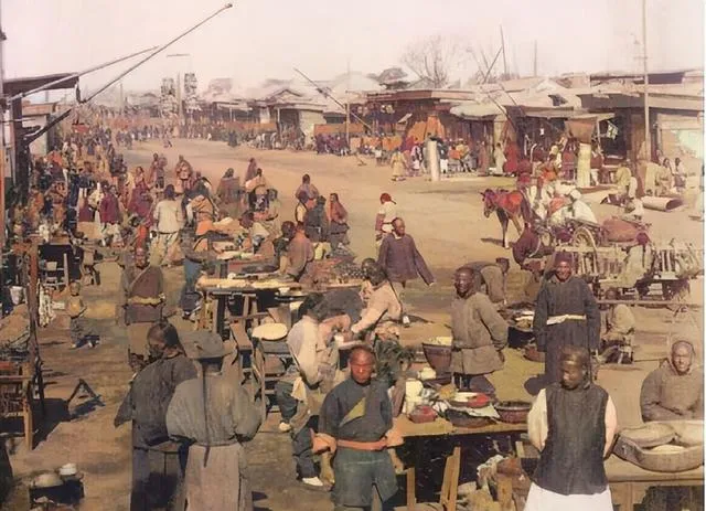 1900年清朝百姓赶集老照片:那会就有小吃街,比电视剧演的还热闹。