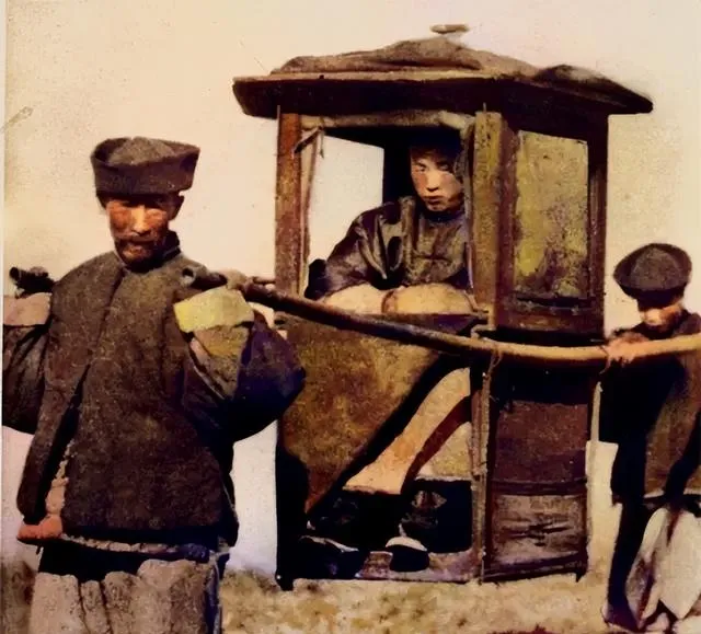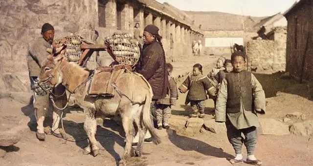 这一对人和猪最显眼,车上坐的是雇主,点着长烟袋,车把后头是车夫,脚下用力蹬着,车侧还绑着一头黑毛猪,爷爷笑我小的时候见过类似的,说小猪不好拎就整车拉着,省事也不折腾牲口。