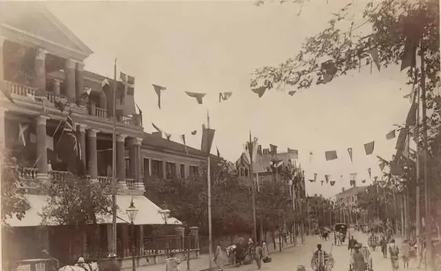 这条街头顶飘的旗串,一面接一面,像在给城里人打气,楼角的煤油路灯竖在那儿,白天看着瘦,夜里一亮就精神,商号门前的牌匾漆得黑亮,伙计抱着算盘站门墩上,一抬手就是招呼。