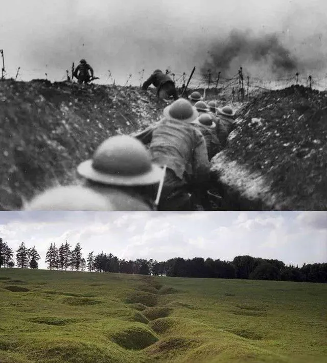图中那孔洞叫射击孔,沙袋一层压一层,机枪手半身探着,远处是低丘和枯草,战争的照片都是一个味,灰,硬,冷,人站在里面就像被冻住。。