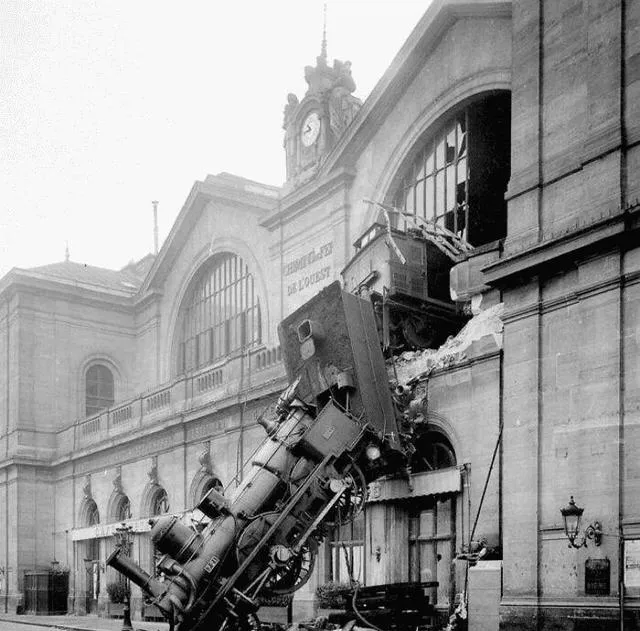 这张老外的照片厉害,火车头像钉子一样戳出楼檐,钟面还稳稳挂着,石柱的线条很硬,蒸汽机的管子却软塌塌垂下,外公看见这张说,机器再壮,也架不住一脚错刹,这话往哪年都对。。