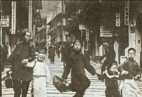 这张街景里,保姆牵着小娃走在牌坊影子底下,衣角被风一撩,步子紧促,孩子手里还拎着个小提包,路两边招牌林立,字样密密麻麻,那会儿有钱人家才请得起奶娘保姆,孩子穿得齐整,脸蛋白净,和如今推着婴儿车逛商场不一样,街上是泥石路,走一步看一步,热闹却也艰辛。