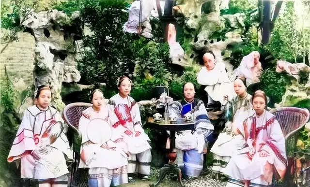 以前大家庭讲排场,逢节令就在园里摆席,唱小曲、投壶、对弈,拍照时神情平静,像是日常,到了现在,人手一杯咖啡坐商场里,也算热闹,可这份闲气和层层家生子伺候的讲究,早没影了。
