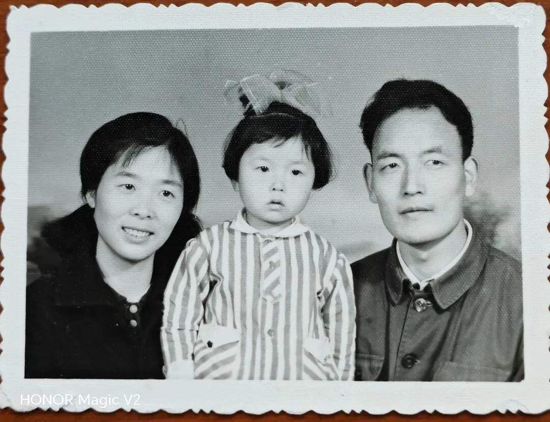 1983年晚秋,丈夫带着3岁女儿,由柞水县来到丹凤师范看我。恰逢周末,我带他与女儿,同去丹凤县城游玩。我想拍张照片纪念,于是找到一家照相馆,拍下了这张照片。