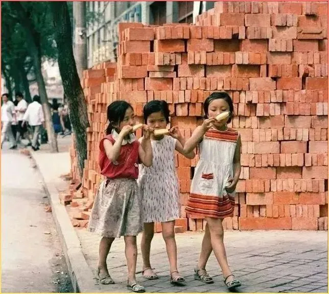 你看照片里这三个小姑娘,站在.一.堆红砖头前,手里捧着玉米啃得那叫.一个香。那时候农村盖房是大事,红砖堆得高.高的.,孩子们就在砖缝里钻来钻去捉迷.藏。玩累.了,大人递过来一根煮玉米,不用加糖,那股自然的清甜味儿能.一直甜到.心里。这种纯天.然的快乐,现在的孩子恐怕很难体会到了,他.们手里的零食多了,可那种因.为稀缺而产生的满足感却少了。