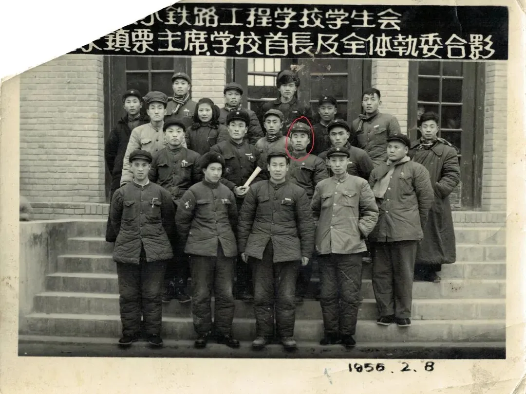 我父亲叫宋镇栗,河南郑州人,1930年出生。解放前他在宝天线拓石车站工作,解放后去了天水铁路工程学校上学,他在校期间担任了学生会主席。这张老照片是父亲1956年2月8日在该校毕业时,学生会执委会全体成员和学校领导欢送他的合影。他当时站在第二排左数第三的位置。