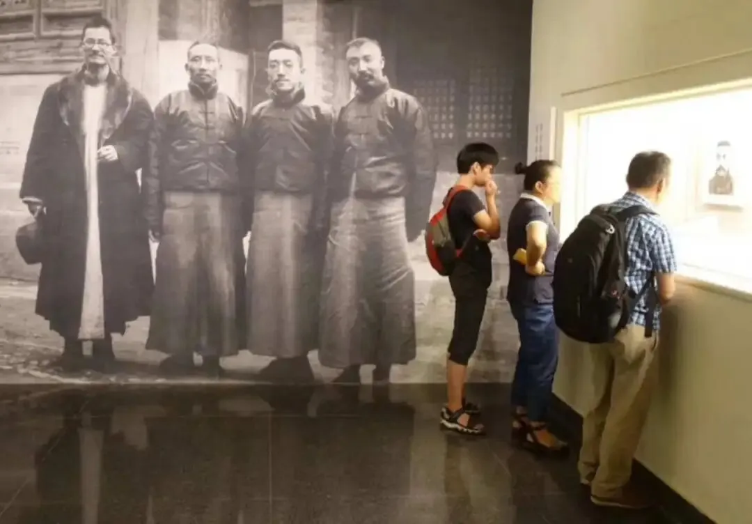 前几年,1919年,五四运动100周年,北京大学策划了纪念特展“新文化的曙光:五四时期北大学人群像”,在北大赛克勒考古与艺术博物馆举行,展厅放大展示了这张四人合影照片。