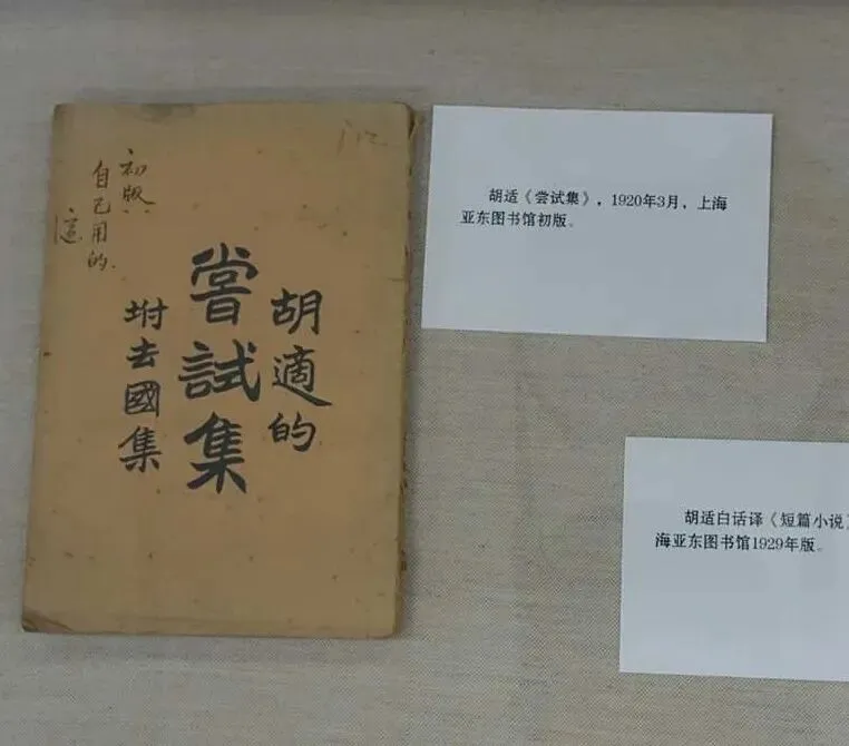 图片 胡适《尝试集》1920年3月出版。展出这本为胡适自存本。胡适写“初版。自己用的。适”。北大图书馆2016年展出。江曾/摄