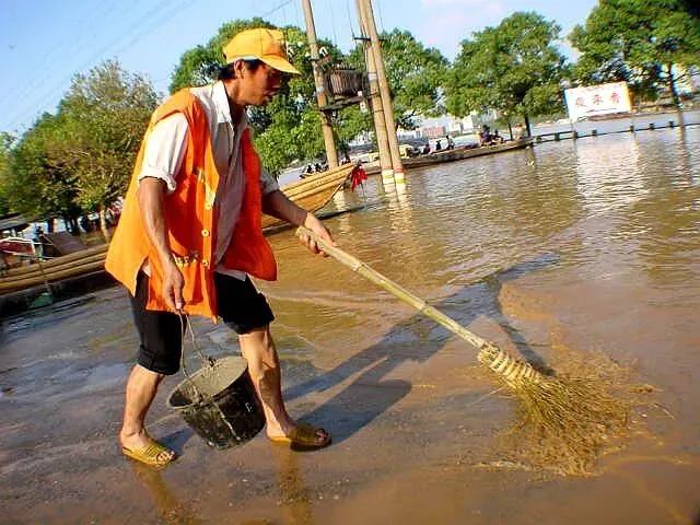 记得2002年那场洪水,我拿着相机踩着齐膝的泥水往橘子洲的江边跑,原本熟悉的石板路早已不见踪影,只有漂浮的树枝、塑料桶在水面打转。